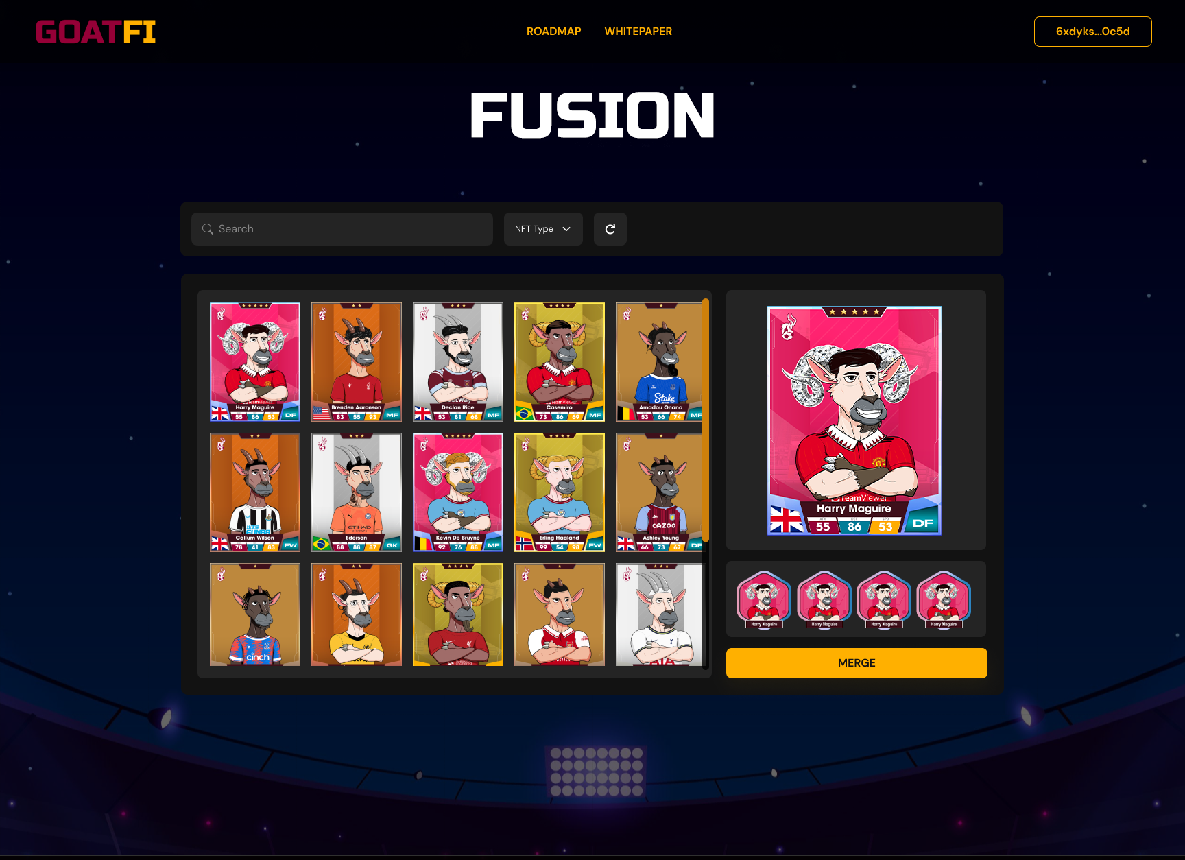 **Mystery Fragment:** Merch 4 pieces of mystery fragment to randomly generate 1 NFT Football Card